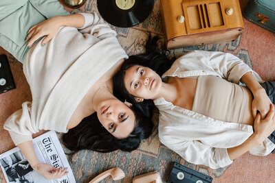 Sisko Media is run by sisters Caitlin and Patricia. They needed images of them working together, but also wanted to show their dynamic as a sister duo. Their aesthetic is strongly connected to retro and old media vibes. We made sure to incorporate props that reinforced this theme. They consider themselves an (anti)agency bridging the gap between in-house marketing and big agency. When looking for photo inspiration, I focused on posing, prop placement, and body language that aligned with the theme of "bridging the gap".